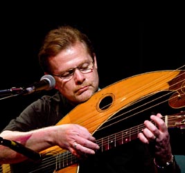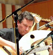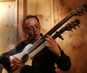 "James Kline demonstrated sheer technical mastery in the service of the music, rather than as an end in itself...playing with absolute clarity and with a most apt sense of phrasing." -The Irish Times, Dublin James Kline of France keeps musically evolving, as do his harp guitars. He is a consummate classical guitarist who plays a custom “arch-guitar,” which beautifully combines the tonalities of the lute and guitar. More recently, James had treble harp strings added to his nylon-strung instrument along with an all-steel string version of this same harp guitar. James uses his instruments for all sorts of repertoire – classical, folk and original – within solo, instrumental, vocal, and ensemble settings. He has CDs in both our contemporary and historical sections. |
