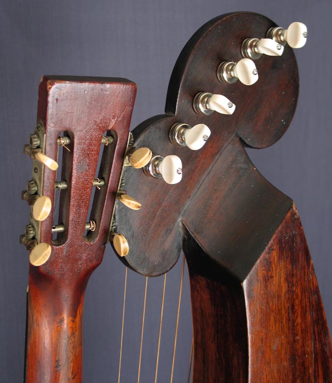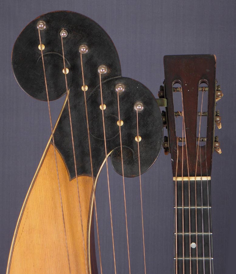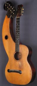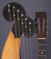 Style 5 is the second grade in the five levels of "Type 1" Dyer models. This one has the preferred 6 sub-basses. All in all, a solid instrument that is ready to go. Comes with the client's black Harp Guitar Music gig bag (minor dirt outside). If you prefer to shop for an alternate case, I'll give a $125 rebate on the gig bag. -Gregg Miner, the "harp guitar pope" |