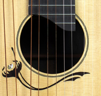 Quite simply, I recognized a once-in-a-lifetime opportunity for some deserving musician out there. I first gave it a thorough going over with my assistant Frank (Doucette), including: aesthetics (almost exactly like John Doan’s, with some added sparkle), fit and finish (a solid 9.5 or better), condition (at first glance, “like new”), and tone (distinctive, incredibly responsive and loud). The Sullivan-Elliott harp guitar created for Doan (I’m switching to last names; they’re too many “Johns” in this story!) has long since become both an iconic instrument and also a historically important harp guitar milestone. See my Harpguitars.net Members article on Super-Trebles and you’ll clearly see how and why. Add to that Sullivan’s reputation as a skilled luthier and his extremely limited harp guitar output (listed below), and I think you'll agree that this is an irreplaceable dream instrument. The seller, Bob Gore, who has quite an arsenal of modern guitars and harp guitars (including Fred Carlson’s “New Dream”) recently had shoulder surgery and is now unable to play this particular model. It was built to emulate Doan’s instrument specifically, so it has the exact same design and most woods, including African blackwood back, sides and headplate and spruce top (species unknown). The bridge has that distinctive “tail,” and the rosette is the same artistic flourish originally designed by Doan’s artist wife, Deirdra. Sullivan added his own little tweak by replacing the center dot with a delicate pearl flower. This flower is then repeated for the fret markers. Nice! One external difference I noted was the unusual spacing of the sub-bass nut posts. The strings are “paired” like that due to the way they come off the tuning posts. I can only assume this matched the direction Sullivan thought the tuners should turn in (as every other one is at 90 degrees, I’m confused regardless...but you’ll figure it out soon enough). Of course, the spacing is even at the bridge. Internally, this thing is a wonder. Anyone serious about it should by now already have the 2009 American Lutherie issue #99, with Doan’s instrument (and hands) on the cover. In it, author Jeffrey Elliott shows the bracing and discusses in some detail HG#4, owned by Mike Bellinger. That and Doan’s instrument were the only two Elliott was ever involved with.