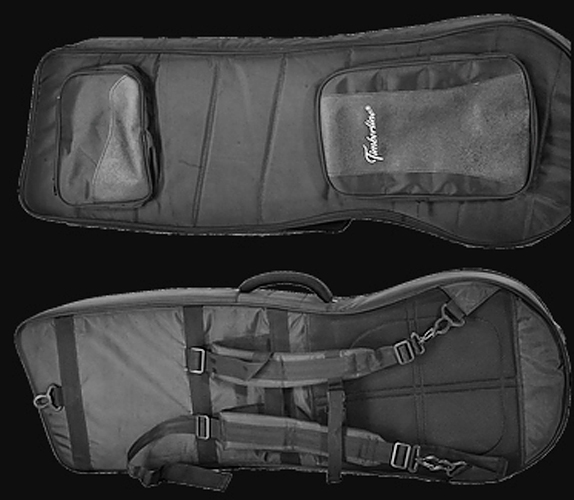 The Timberline® high-quality, heavyweight thickly-padded gig bag is lighter than hard case and offers nearly as much protection. A la carte gig bags are occasionally available (fits many hollow arm harp guitars) for $299. |