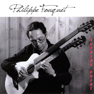 REVIEWS "C’est belle, c’est magnifique, cette musique. Enchanting, delightful, rich in texture and color, the steel stringed melodies of Philippe Fouquet on his debut release for Harp Guitar Music, "Turning Point," captivate the listener with their sheer musicality. In a departure from previous recordings, Fouquet delves headlong into open tunings on "Turning Point." Eight of the 13 tracks are played on his unusual Lukas Brunner harp guitar, where the harp neck is longer scaled and fretless, allowing Fouquet access to deep, resonant registers to anchor his soulful tunes. He makes fine use of them, while allowing the mids and trebles to weave the melody. "Life Will Give You" - as every song on this collection - is a gem of flowing musical ideas. The heat rises a bit on "Run," with a pulsating bass thumping along the route, alternating between major and minor gymnastics across the fretboard; it’s a real digit workout. Fouquet shows equal aplomb when only using six strings (a fine Kathy Wingert guitar), adding unexpected turns in color and chords, as on "La Pluie du Voyage," where a well-placed slap gets our attention. Like most good music, we can sense the development of Fouquet’s themes and ideas as the song progresses, enveloping the listener in his aural meditation. The title cut, "Turning Point," is a melancholic chestnut, brimming with douleur and angst, yet never losing its subtle beauty. There are brief, scattered allusions throughout the CD to the amazing Pierre Bensusan and his complex musical ideas. Whether intentional or not, it’s a fitting homage to a fellow Frenchman and fingerstyle pioneer. "Sky Rivers" bounces between droning bass and ascending and descending chords, rising in tension, only to resolve in gentle harmony. Fouquet concludes the CD with "Sensible," and with his skillful hands, indeed it is. A fine CD, and another great recording from Gregg Miner and the folks at Harp Guitar Music." © Kirk Albrecht, minor7th.com "If you have acoustic guitar lovers in your clientele, you simply must introduce them to Philippe Fouquet’s Turning Point, a recording on which the accomplished artist performs on harp guitar, a dual-necked instrument pictured on the CD’s cover. The harp-guitar’s uniqueness is partly embodied in its sub-bass strings. In Fouquet’s hands, this instrument becomes a vessel of nuance, grace, and artistry. It’s hard to believe that what the listener hears emanates from a single instrument, but it does. By turns fiery and passionate, reflective and inward, and warm and approachable, the 13 tracks on Turning Point will enchant and delight instrumental acoustic guitar lovers." © Bill Binkelman, New Age Retailer |