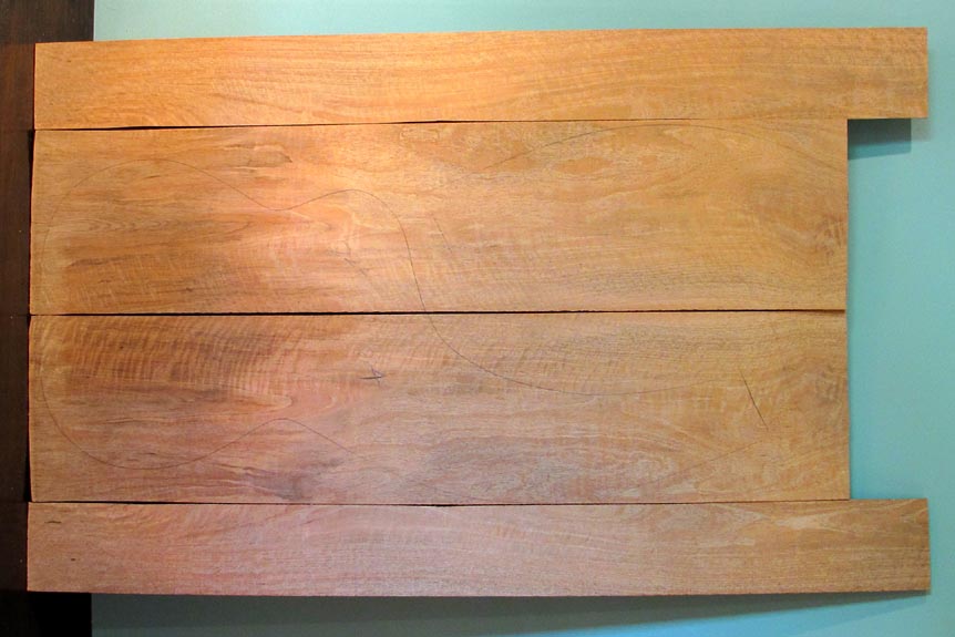 | Wood for Harp Guitars I've been searching for wood almost since I started this site. If there's one thing I've learned, it's that a "board in the hand is worth about 50 in the bush." Supplies are dwindling in many areas, but there is still a lot of great wood out there. Getting people to save or cut it for harp guitar sets is another matter. It will never remotely be a money maker for me. I just saw a need for getting a pipeline going from stockpile to builder - both professionals and the dozens of first time or casual builders I am routinely contacted by. I've found a need to supply a couple builders for my own projects as well, so this inventory was born from that. (Note that etiquette requires clients to ask a prospective luthier before considering supplying their own wood. It is not typically done). My goal is for this to be a consignment area for large or small suppliers - or any individual who wants to help the harp guitar community gain access to a constant supply of a variety of useful, and even special, material. - Gregg Miner, "the harp guitar pope"